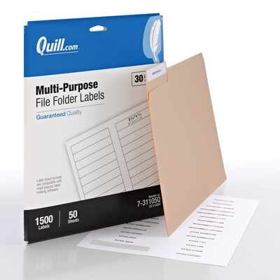 Cleaning & Office Supplies for Every Workspace | Quill.com Quill Brand® Laser/Inkjet File Folder Label, 2/3" x 3-7/16", Assorted, 750 Labels (Comparable to Ave $29.99 750 EACH = 1 BOX Qty: Add to Cart Total $113.97 Add All to Cart Customers Also Viewed 4.2 (251) Avery TrueBlock Laser/Inkjet File Folder Labels, 2/3" x 3 7/16", White, 750 Labels/Pack (8366) $33.99 Pack When you buy 3+ This item ships FREE *