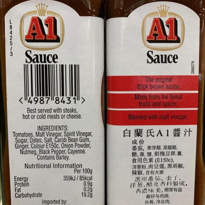 A1 Worcestershire Sauce: Calories, Nutrition Analysis & More - Fooducate A1 Worcestershire Sauce nutrition grade N/A 5 Calories Per Serving 0 comments No rating 0 followers Explanations Keto: net carbs 1g If you are following a ketogenic diet (keto), you need to restrict your daily carbohydrate intake so that your body enters ketosis. For most people, this means less than 50 net carbs per day. What Is A1 Sauce Made Of? ⋆ We Want The Sauce A1 sauce does have vinegar in it, in fact, it is the second ingredient on the list and therefore the second most abundant in this sauce. How Many Calories Are In A1 Sauce? There are 15 calories per serving (17 grams/1 Tablespoon) of A1 sauce. A.1. Original Sauce, 12 ct Pack, 15 oz Bottles - Products A.1. A.1. Original Sauce, 12 ct Pack, 15 oz Bottles. A.1. adds uniquely unforgettable flavor that elevates everything from elegant steaks to flavorful burgers and exciting breakfast items. The distinctive flavor that's synonymous with steak is still the one everyone knows and loves about this product. Buy Now: Calories in Kraft A.1, Steak Sauce and Nutrition Facts Kraft A.1, Steak Sauce Nutrition Facts Serving Size 1 tbsp (17 g) Amount Per Serving Calories 15 % Daily Values* Total Fat 0.00g 0% Saturated Fat - Trans Fat - Cholesterol 0mg 0% Sodium 280mg 12% Total Carbohydrate 3.00g 1% Dietary Fiber 0.0g 0% Sugars 2.00g Protein 0.00g Vitamin D - Calcium - Iron - Potassium 53mg 1%