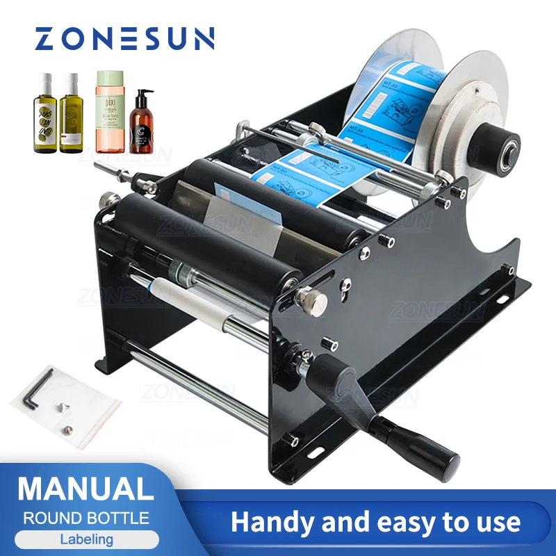 Label Applicator Manual Round Bottle Labeling Machine Beer Can Jar Tube Wine Adhesive Sticker Labeler ZS-50 ZONESUN