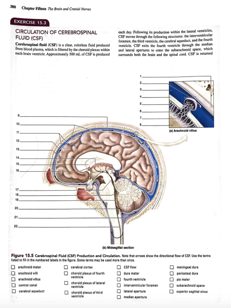 43 label the structures involved with circulation of cerebrospinal fluid on the accompanying diagram