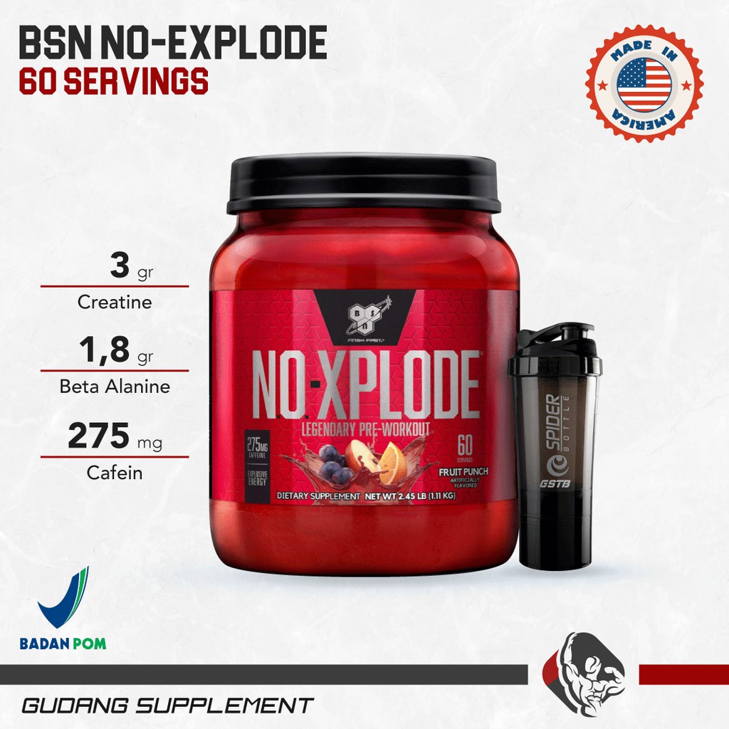 Amazon.com: BSN N.O.-XPLODE Pre Workout Powder, Energy Supplement for ... BSN N.O.-XPLODE Pre-Training Performance Powder - Green Apple - 2.45 lbs The Original Pre-Workout Igniter. Re-engineered. In 2004 BSN® changed the landscape of sports nutrition forever when we introduced the first complete pre-workout supplement, N.O.-XPLODE®.