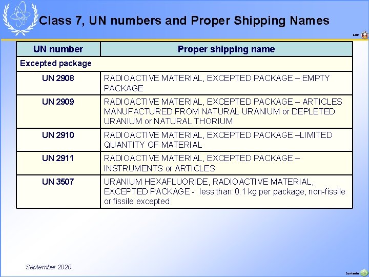 List of UN numbers 2901 to 3000 - Wikipedia 4.1. Isosorbide dinitrate mixture with not less than 60 percent lactose, mannose, starch or calcium hydrogen phosphate. UN 2908. 7. Radioactive material, excepted package—empty packaging. UN 2909. 7. Radioactive material, excepted package-articles manufactured from natural or depleted uranium or natural thorium. UN 2910.