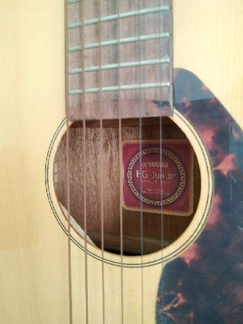 Yamaha Red Label Indonesia FG Junior JR-1 Six String Acoustic Guitar ... Yamaha Red Label Indonesia FG Junior JR-1 Six String Acoustic Guitar. I purchased the guitar and it sounded great to me. No cracks, warping, separation or broken pieces with very minor wear. Small impress on the left face. Measures approx 33 1/2 inches long, 12 1/2 inches from side to side and 3 1/2 inches wide. Inner area is serial numbered and has the red Yamaha label. Comes from a smoke ...