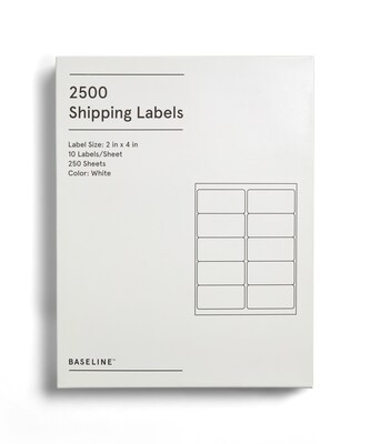 Baseline Laser/Inkjet Shipping Labels, 2" x 4", White, 2500 Labels (Compare to Avery 5163, 5263, 5444, 8163 & 8463)