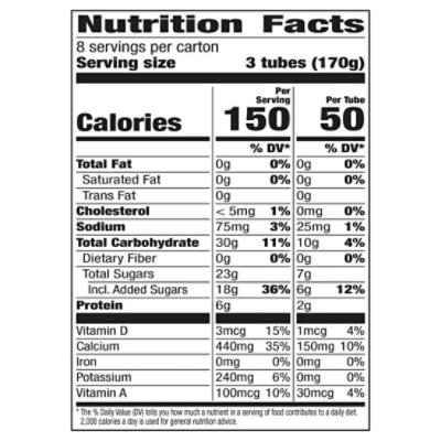 Calories in Yoplait Go-Gurt and Nutrition Facts - FatSecret Nutrition summary: There are 50 calories in 1 tube (56 g) of Yoplait Go-Gurt. Calorie breakdown: 9% fat, 76% carbs, 15% protein.