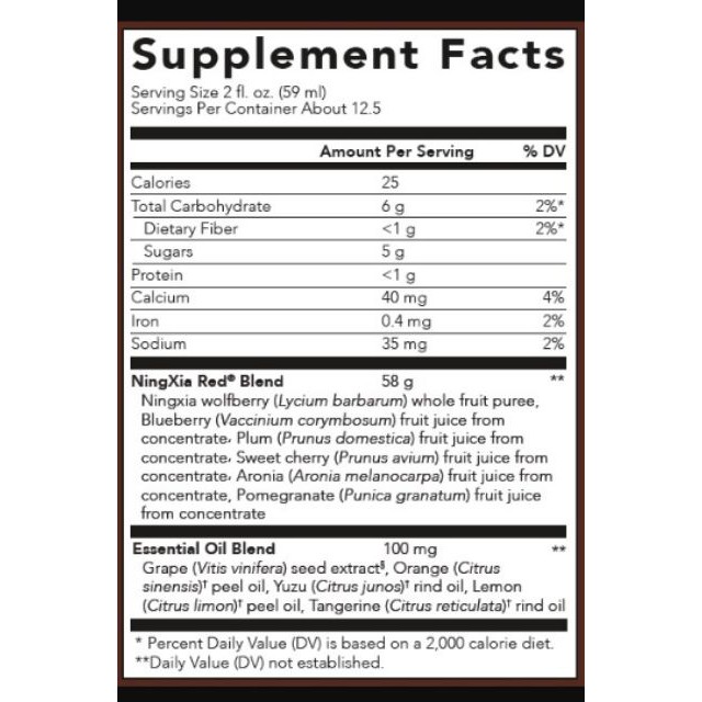 Ningxia red calories. › us › enNingxia Red® Antioxidant Drink | Young Living Essential Oils Proprietary NingXia Red Blend: 58 g Ningxia wolfberry puree (Lycium barbarum), Blueberry juice concentrate (Vaccinium corymbosum), Plum juice concentrate (Prunus domestica), Cherry juice concentrate (Prunus avium), Aronia juice concentrate (Aronia melanocarpa), Pomegranate juice concentrate (Punica granatum) September 2022 - Health Freak Mommy More calories burnt While waist trainers and shapewear don't burn calories, wearing them during exercise will help you to sweat more. With that extra sweat, you will lose some water weight and calories. Before you jump into your first waist trainer, make sure you do your research and get properly measured. › us › enNingxia Nitro® | Young Living Essential Oils Consume directly from the tube or mix with 1 oz. of NingXia Red® or 4 oz. of water. Best served chilled. Shake well before use. Consume to enhance physical performance.* Enjoy any time you need a pick-me-up. * Drink when you need to clear your mind.* Introduction - JiuShen123 After appreciating the 1964 red wine with his father, he followed him. The father was inspired by a lot of inspiration, and the Kobery Winery came into being. ... In this process, grapes can get sufficient calories to achieve higher maturity, and it is also conducive to the accumulation of sugar and flavor substances. The Receer Rossi vineyard ...