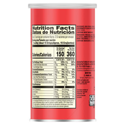 Pringles nutrition label. Pringles (History, Flavors, Pictures & Commercials) Pringles History And Information. The history of Pringles began in 1956, when the company that first produced it, Procter & Gamble, sought to make a chip that did not break and could be uniform in flavor and shape.This was done to address complaints from customers about potato chips commonly breaking in their packaging, as well as concerns about staleness and air inside of … Pringles Cheddar Cheese Potato Crisps Chips - 5.5oz : Target What comes next after the “pop” of a Pringles Cheddar Cheese can? The crisp, tantalizing taste of cheese that hits the spot every time. Includes 1, 5.5-ounce can of ingeniously shaped Pringles Cheddar Cheese Potato Crisps. Insanely light, crispy and never greasy, each crisp is satisfyingly cheesy. With the convenient can, it’s easy to ... Pringles - Wikipedia Pringles is an American brand of stackable potato-based crisps. Originally sold by Procter & Gamble (P&G) in 1968 and marketed as "Pringle's Newfangled Potato Chips", the brand was sold in 2012 to the current owner, Kellogg's.. As of 2011, Pringles were sold in more than 140 countries. In 2012, Pringles were the fourth most popular snack brand after Lay's, Doritos and … 10 Common Foods That Are Accidentally Vegan | PNW 30/06/2017 · Contradicting the “creamy” sauce the label suggests, this product contains no cream or animal products at all! 7. Nando’s Garlic Sauce . Now just like the tartare sauce, finding out that Nando’s Garlic sauce was vegan really surprised me! Look at the bottle – “surely not” I originally thought! But I was later thrilled to find out that I could add this new little sauce to my ...