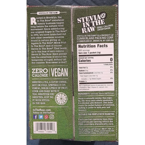 Stevia In The Raw Nutrition Label / Cumberland Packing Stevia In The ... How long would it take to burn off 3 calories of in the raw stevia in the raw: In the raw · nutrition facts · per 1 tsp (0.5 g) · amount per serving · calories 0 · fat 0 g · carbohydrate 0 g · protein 0 g · not a significant source of saturated . Calories, carbs, fat, protein, fiber, cholesterol, and more for stevia in the raw ( stevia).