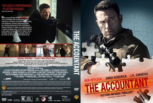 Accountant, The - DVD Talk This two-disc "combo pack" includes the Blu-ray, a DVD copy and an UltraViolet HD digital copy. The discs are packed in an eco-case that is wrapped in a flat slipcover. ... (10:38/HD) discusses the Wolff character; Behavioral Science (8:04/HD) focuses on the realities of autism; and The Accountant in Action (7:14/HD) sees the film's cast and ...