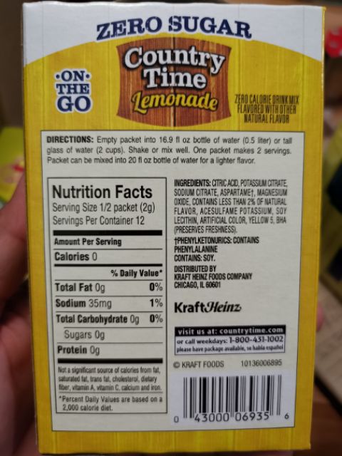 Country Time Lemonade Zero Sugar On The Go 6 Sachet Drink Mix 23.7g ... Country Time Zero Sugar Lemonade Naturally Flavored Powdered Drink Mix, 6 ct On-the-Go Packets $8.99 ($8.99/Count) Product details Package Dimensions : 9.5 x 6 x 1.5 inches; 5.61 Ounces ASIN : B089R4ZPHG Best Sellers Rank: #75,104 in Grocery & Gourmet Food ( See Top 100 in Grocery & Gourmet Food) #463 in Powdered Soft Drink Mixes