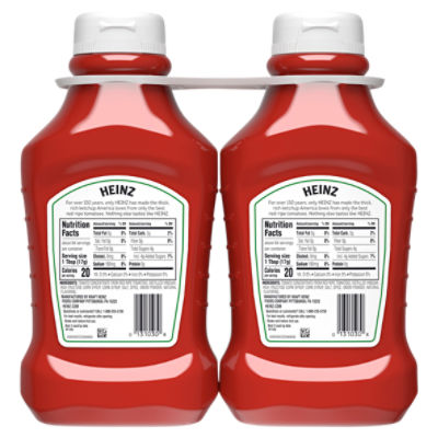 Heinz Tomato Ketchup, 32 oz Bottle - Recipes Heinz Tomato Ketchup, 32 oz Bottle . Our classic ketchup is made only from sweet, juicy, red ripe tomatoes for the signature thick and rich taste of America's Favorite Ketchup®. ... Email Email . Print . 101 Ways To Make You Smile. UPC 00013000006057 | GTIN 00013000006057. NUTRITION . Amount Per Serving. Calories . 20 . Calories From Fat. 0 ...