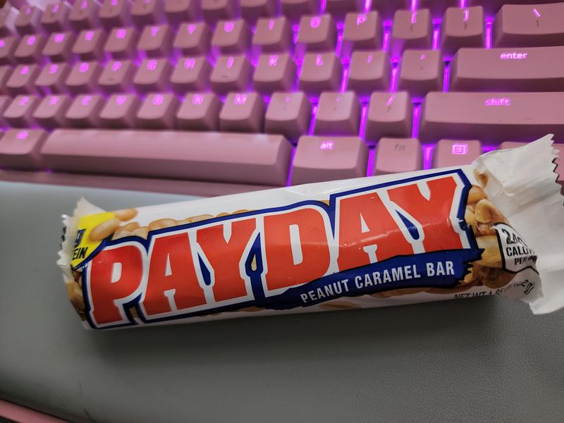 Find Payday Calories & Nutrition Facts | MyFitnessPal Payday. Payday, 1 bar. Calories: 240 · Fat: 13g · Protein: 7g ; Snack Size. Payday, 1 bar. Calories: 90 · Fat: 5g · Protein: 3g ; Large Size. Payday, 0.333 bar (32g). Calories in Hershey's PayDay, Peanut Caramel Bar, snack size How many calories inHershey's PayDay, Peanut Caramel Bar, snack size ; Fat, 5 g ; Carbs, 10 g ; Fiber, 1 g ; Protein, 3 g ; Swimming. 8 minutes.