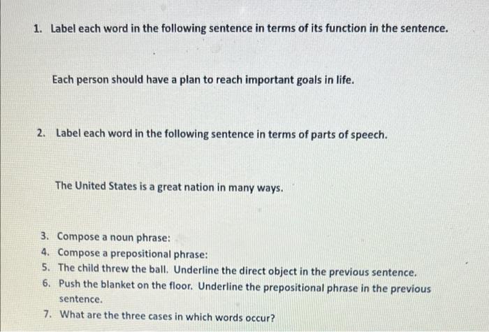 Label the sentence parts. Lesson Plan: Label Sentences with Parts of Speech - ThoughtCo Mar 16, 2019 ... Write a few simple sentences on the board. Examples: John is a student. John is good. John is a good student. Mary works in an office. Mary ... Identify Parts of Speech in sentences with our Tagger Tool The Parts of Speech Tagger tool analyses your text and labels each part according to the role it plays in a sentence. This includes nouns, verbs, adjectives and ... SENTENCE PARTS AND PATTERNS PATTERN #2: SUBJECT + VERB + DIRECT OBJECT. Page 12. TRY THESE S+V+DO EXAMPLES: 1. Label the sentence parts: ▫Monkeys eat bananas. ▫She loves her job. Labeling Parts Of A Sentence Teaching Resources - TPT Results 1 - 24 of 620+ ... Labeling the Parts of a Sentence Quiz. Created by. Mrs McLiteracy. Students will label nouns, verbs, adjectives, and adverbs.