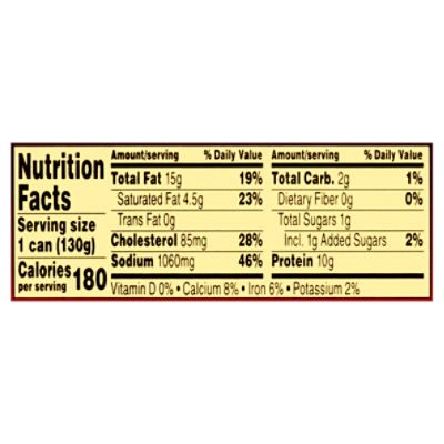 Vienna sausage calories. › armour › vienna-sausageCalories in Armour Vienna Sausage and Nutrition Facts - FatSecret Vienna Sausage Nutrition Facts Serving Size 3 sausages (50 g) Amount Per Serving Calories 100 % Daily Values* Total Fat 8.00g 10% Saturated Fat 2.500g 13% Trans Fat - Cholesterol 40mg 13% Sodium 470mg 20% Total Carbohydrate 1.00g 0% Dietary Fiber 0.0g 0% Sugars 0.00g Protein 5.00g Vitamin D - Calcium - Iron - Potassium -